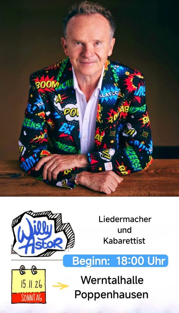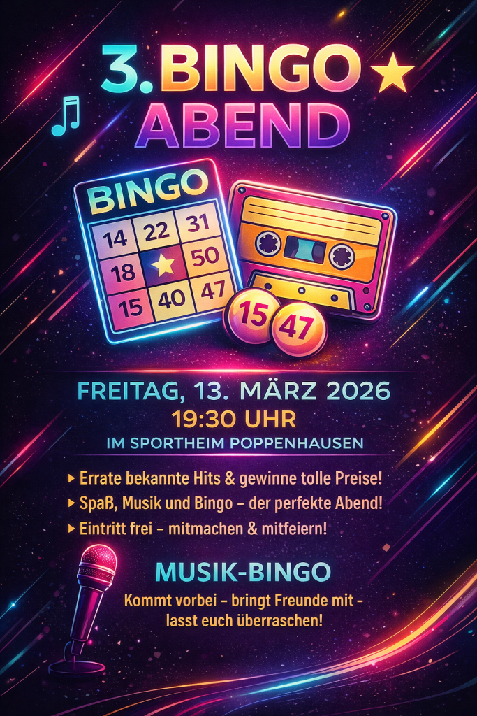 Am Samstag dem 23.11.2023 findet das Kabarett mit Stephan Bauer in der Werntalhalle in Poppenhausen statt. Der Einlass ist ab 19 Uhr und die Vorstellung beginnt um 20 Uhr. Ticket-Verkaufsstellen sind die Metzgerei Mai, die Bäckerei Köberlein und Schreibwaren Fenn.