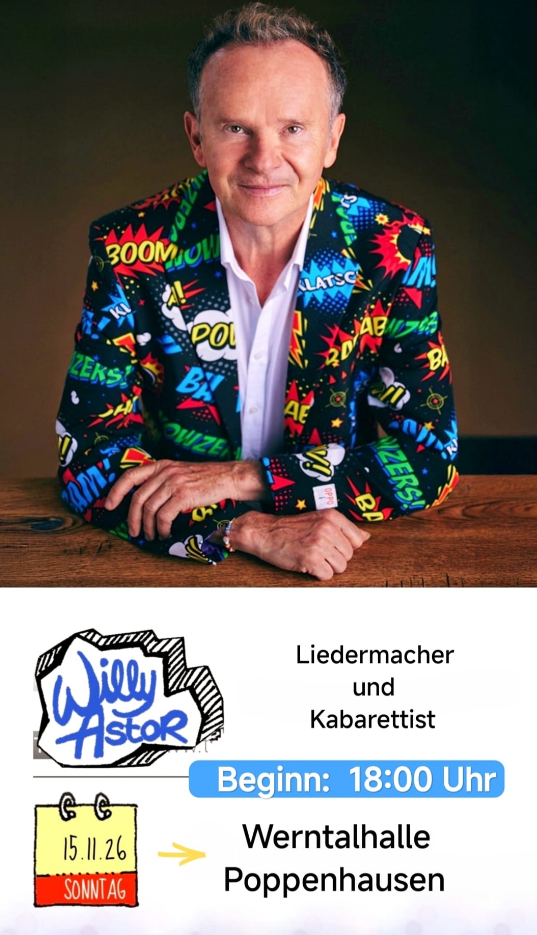 Am 24.11.2024 geht es los. Beim nächsten Event in der Werntalhalle dürfen wir wieder Stefan Bauer mit einer Kabarett-Show begrüßen. Kabarett und Comedy auf höchstem Niveau……